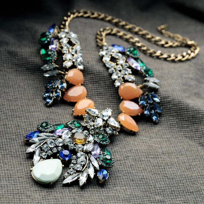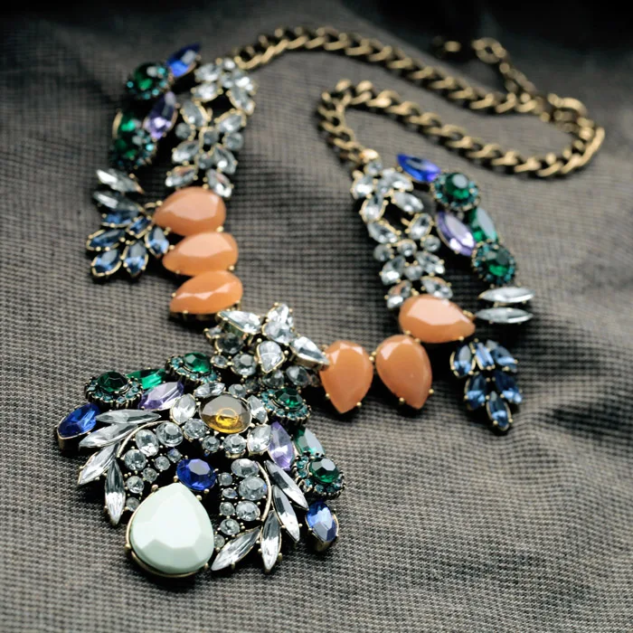Hyperbole 2019 Newest Colorful Resin Luxury Crystal Pendant Statement Necklace For Women Gifts Fash