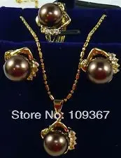 Noblest lady's gift fine 4 colors Black&white&brown& Shell Pearl Pendants Necklace Earring Ring shi
