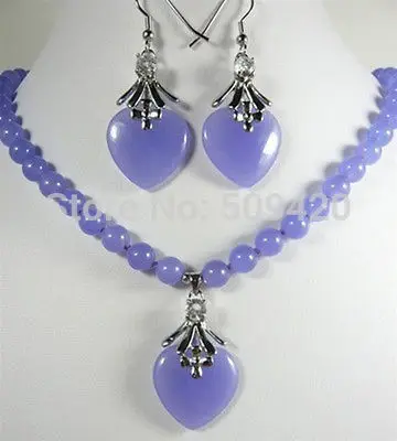 Best p&p Wholesale FS65628>>V8mm purple necklace 17 "& heart love earrings pendant set