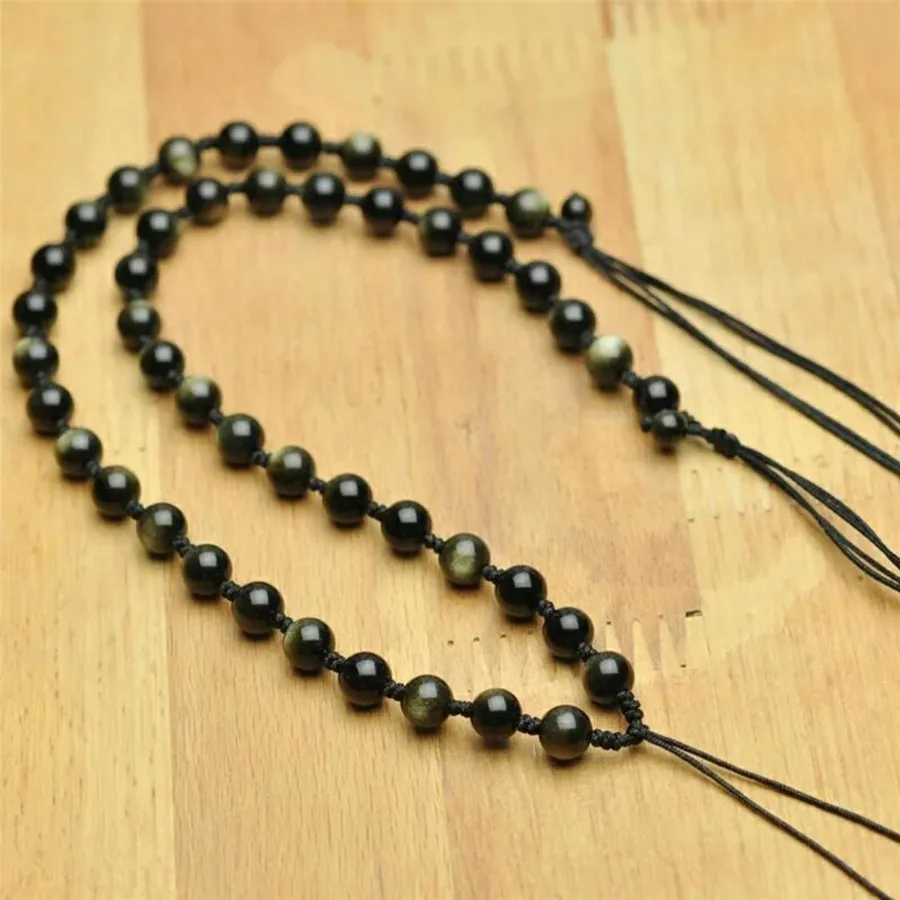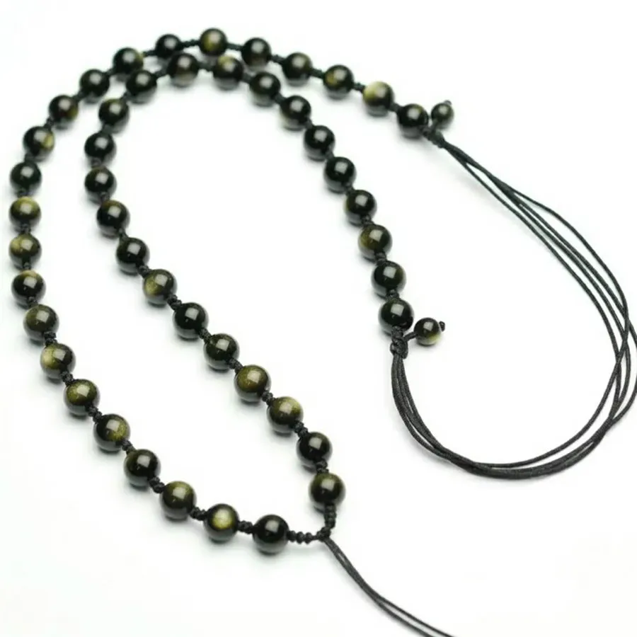 Best Quality Genuine Natural Gold Obsidian Gems Stone Crystal Round Beads Jewelry Women Mens Powerful Adjustable