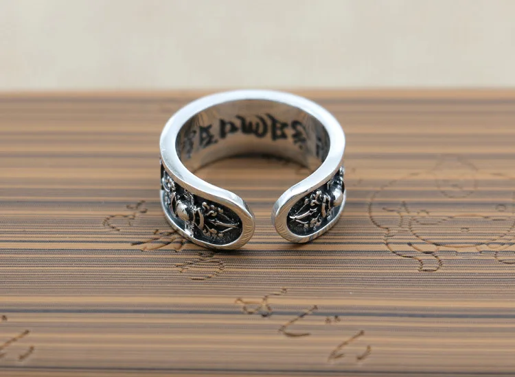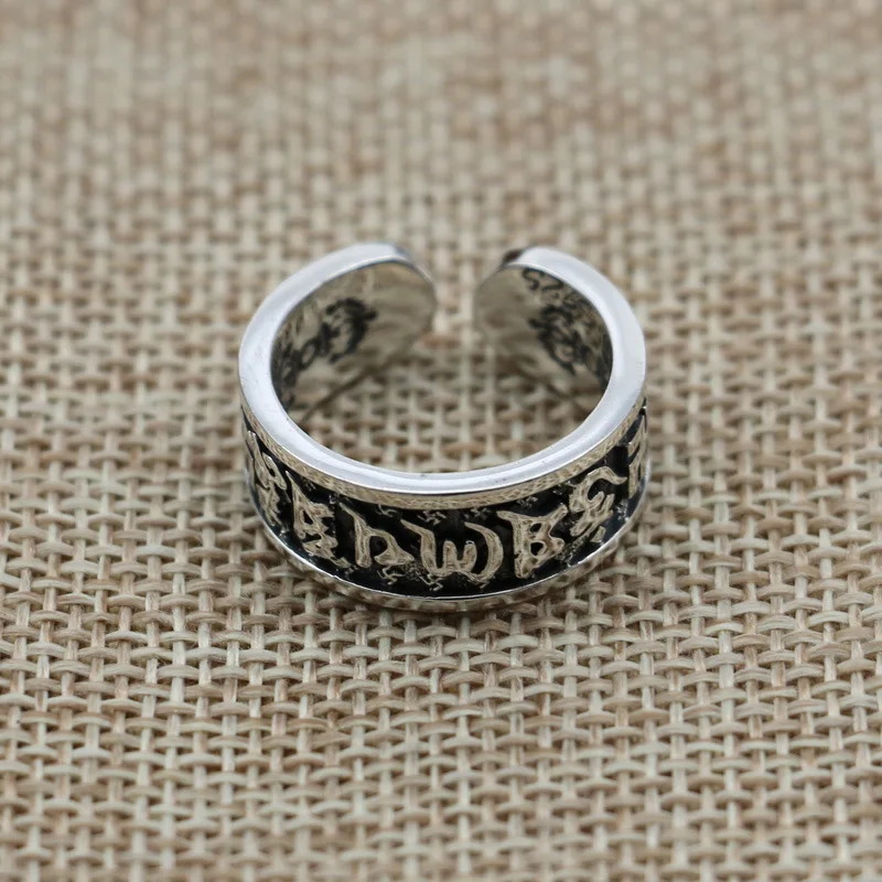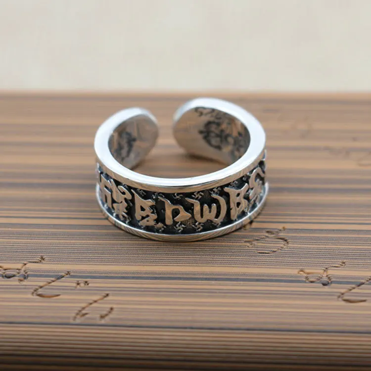 Best Quality HipHop Style 925 Sterling Silver Ring Fashion Jewelry Open Ended Six Words Scripture Retro Thai Sil
