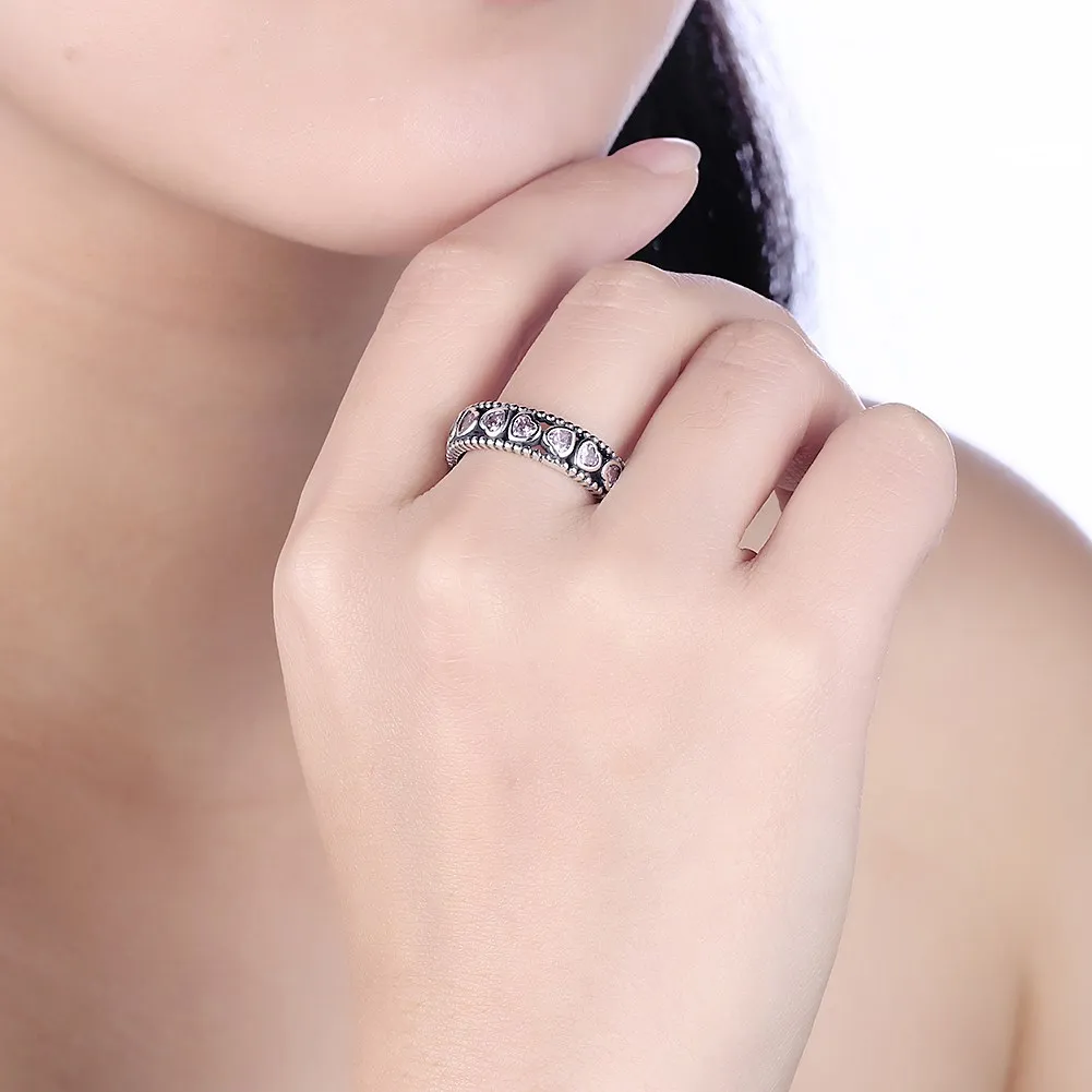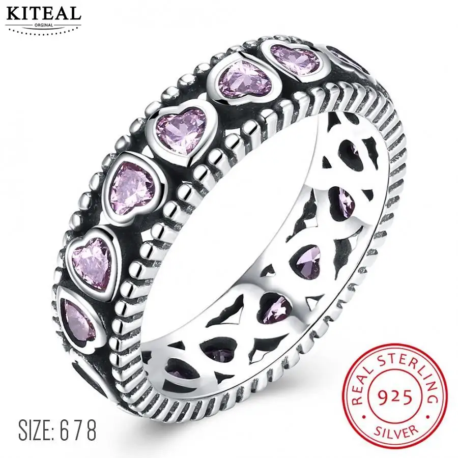 BEST SELLER 2018 925 silver Pink size 6 7 8 Tail ring for female purple CZ zircon vintage sterling silver opal