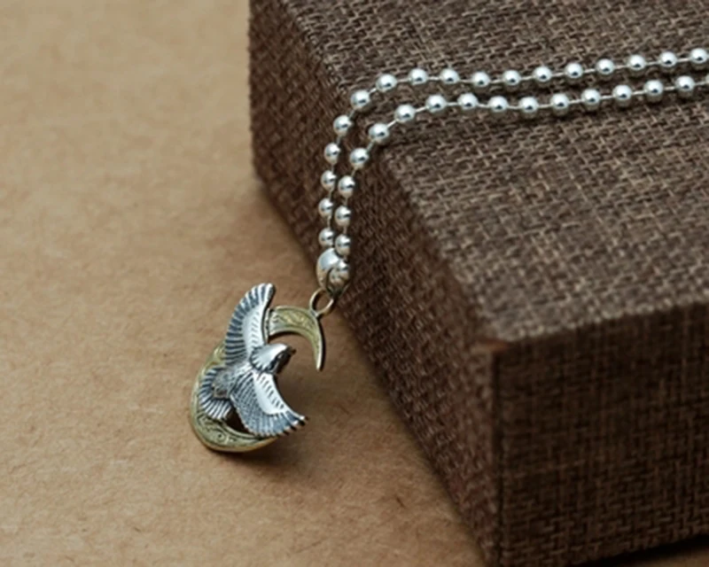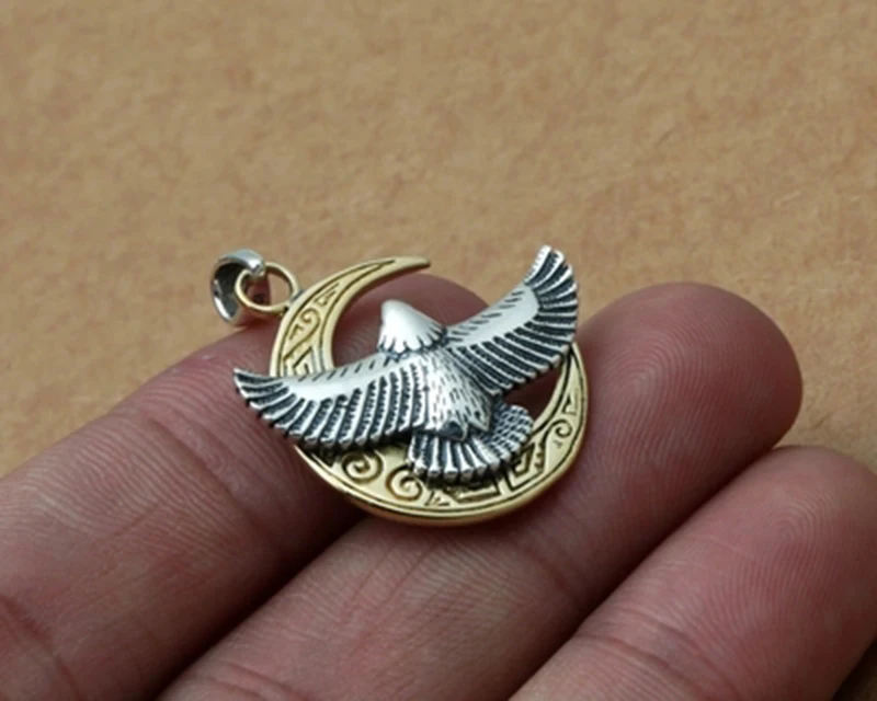 HIGH QUALITY BESTLYBUY 925 Sterling Silver Pendant for Necklace & Eagle and Moon Pendant for Cool Men Vintage Pu