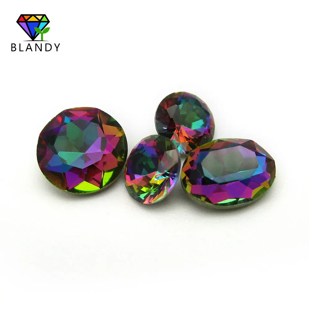 Multi Color Glass Stone With Golden Plated Bottom 2x3~13x18mm Oval Cut Mystic Color Glass Beads Syn
