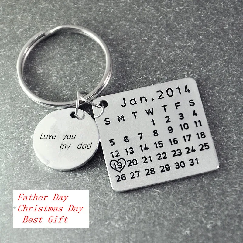 BEST Solid Silver Personalized Calendar Tag Key Chain Custom Memorial Date Love Heart Round Tag Keepsake