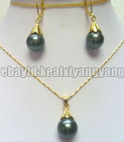 BEST Women's cospay women's Hair full wigs Yellow Gold Plate Black Shell Pearl Pendant Earring AAA style