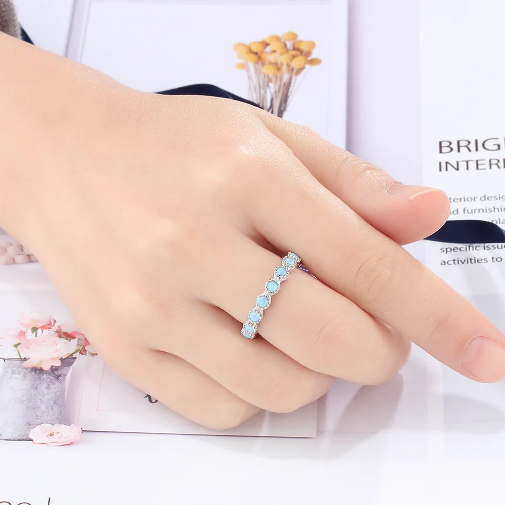 BEST Gloss shining opal ring sterling-silver-jewelry for girls women fashion rounded finger ring gifts f