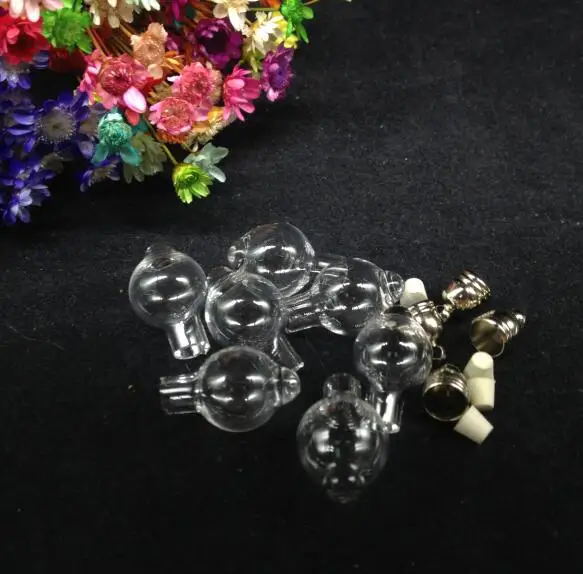 100pcs 24x11mm small ball glass Vial penadnt rubber plug name on rice bottle miniature locket vials