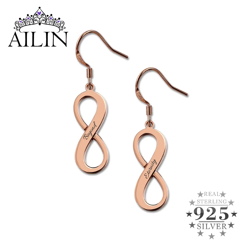 HIGH QUALITY AILIN Rose Gold Color Infinity Earring Engraved Infinity Symbol Jewelry for Girls