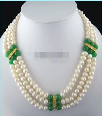 Review Top ***Hot sale >>>>3 Rows Genuine White Pearl Green stone Beads 18KGP Crystal Clasp Necklace silver-je