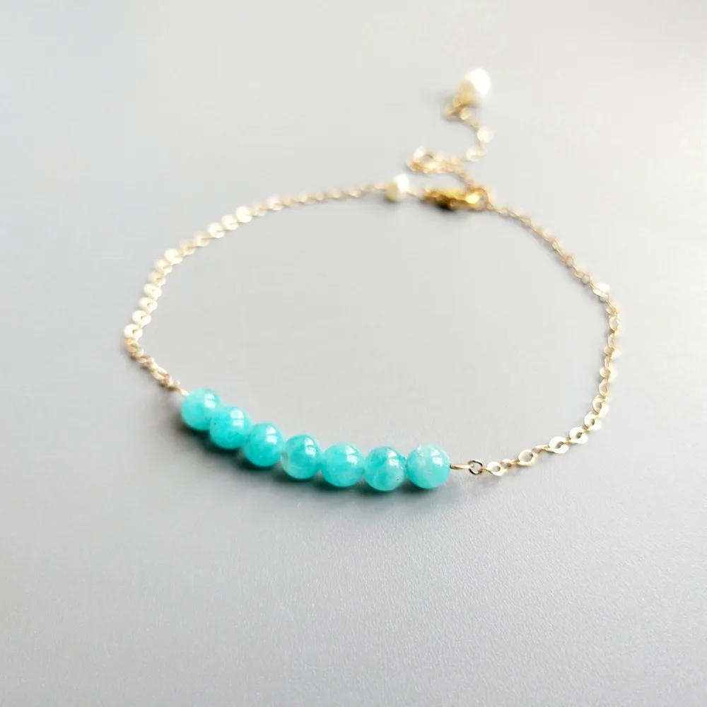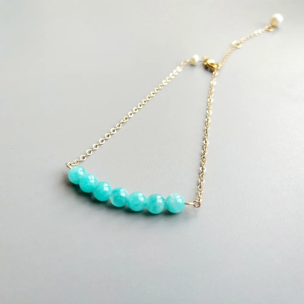 BEST Lii Ji Light Blue ite Freshwater Pearl Gold Filled Link Balance Anklet Delicate Jewelry