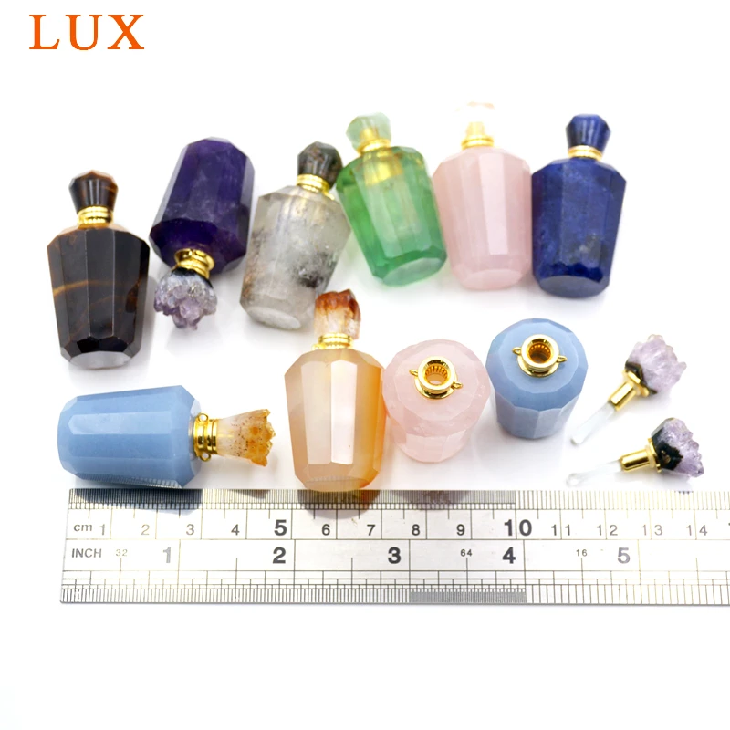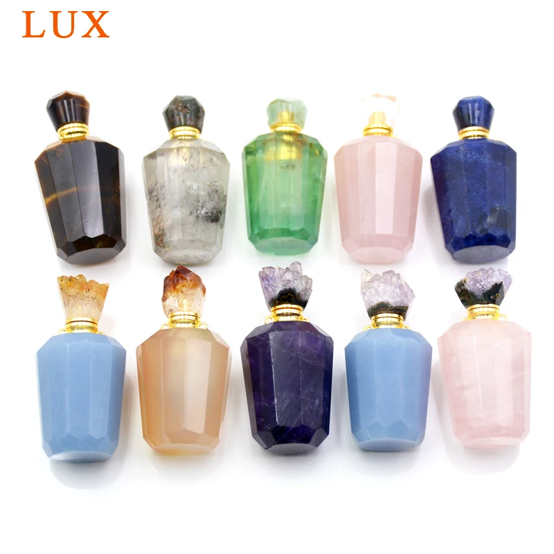 Best Natural rose quartzs amethysts gems essential oils perfume bottle agates druzy caps pendant with st