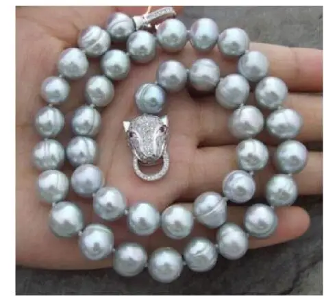 Leopard Clasp AAA 8-9MM NATURAL SOUTH SEA BAROQUE GRAY PEARL NECKLACE Genuine Natural silver-jewelr
