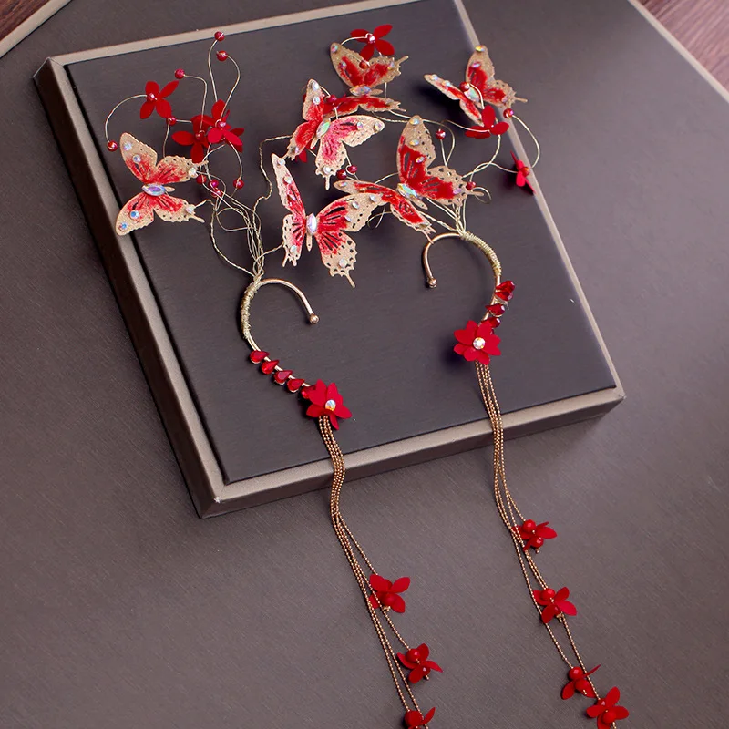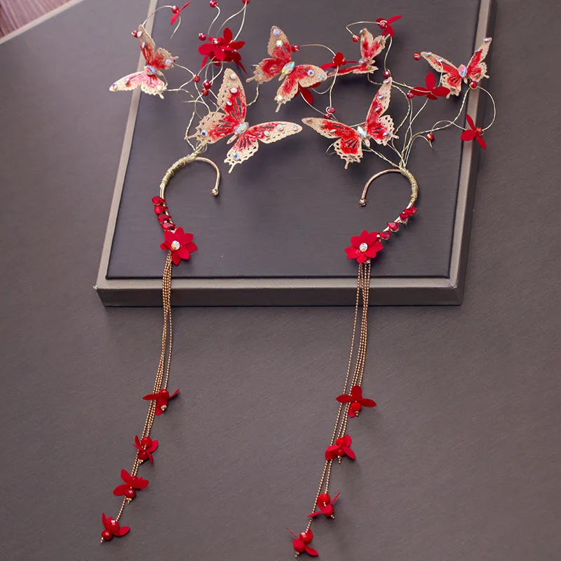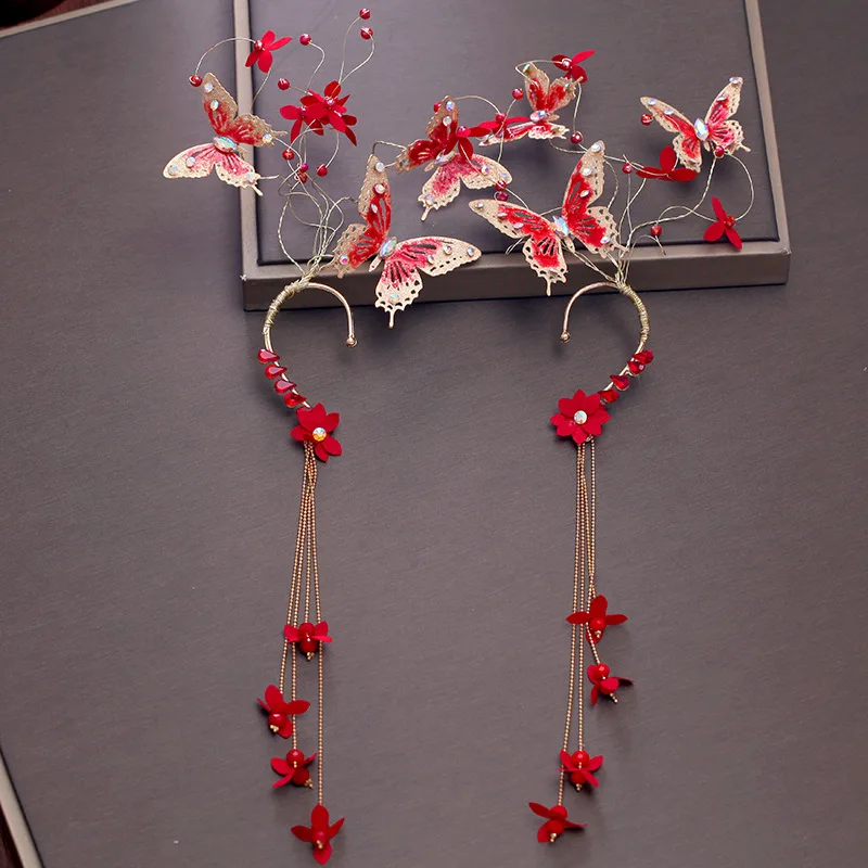 HIGH QUALITY Red Tassel Drop Earrings Gold Color Alloy Butterfly Earring Bridal Wedding Accessories Jewelry Peta