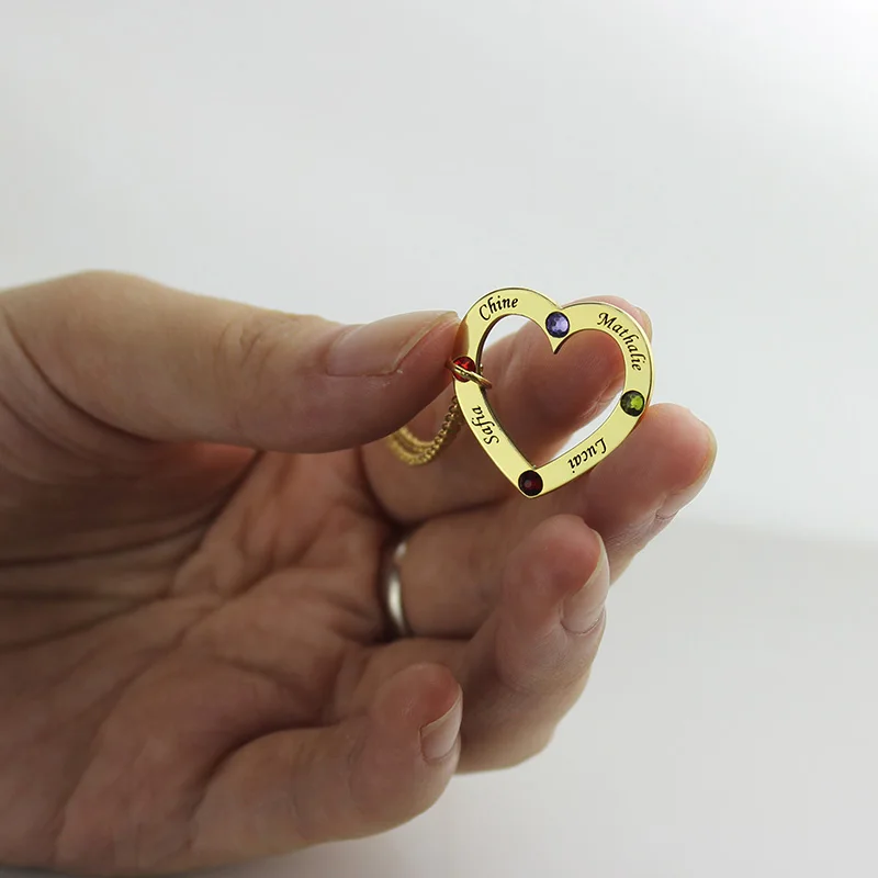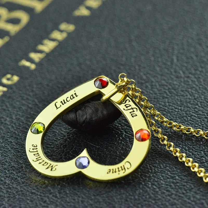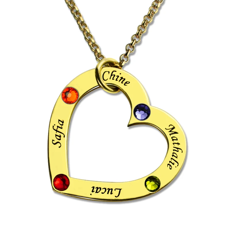 AILIN Gold Color Birthstone Heart Necklace Personalized Names Mother Necklace Family in Your Heart
