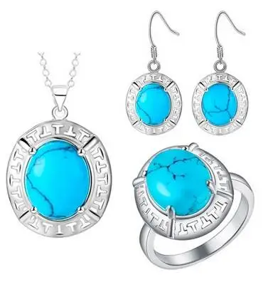 Earrings Ring Pendant Necklace Elegant Thick silver jewelry set of new fashion stone suit Set For W