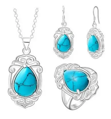 Review Top Earrings Ring Pendant Necklace Elegant Thick silver jewelry set of new fashion stone suit Set For W