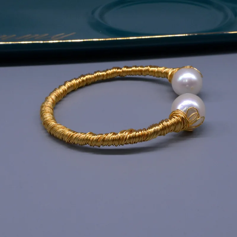 Hot Sale Trend vintage pearl bracelet. Natural freshwater pearl. Open bracelet. Lady golden bracelet. Hip ho