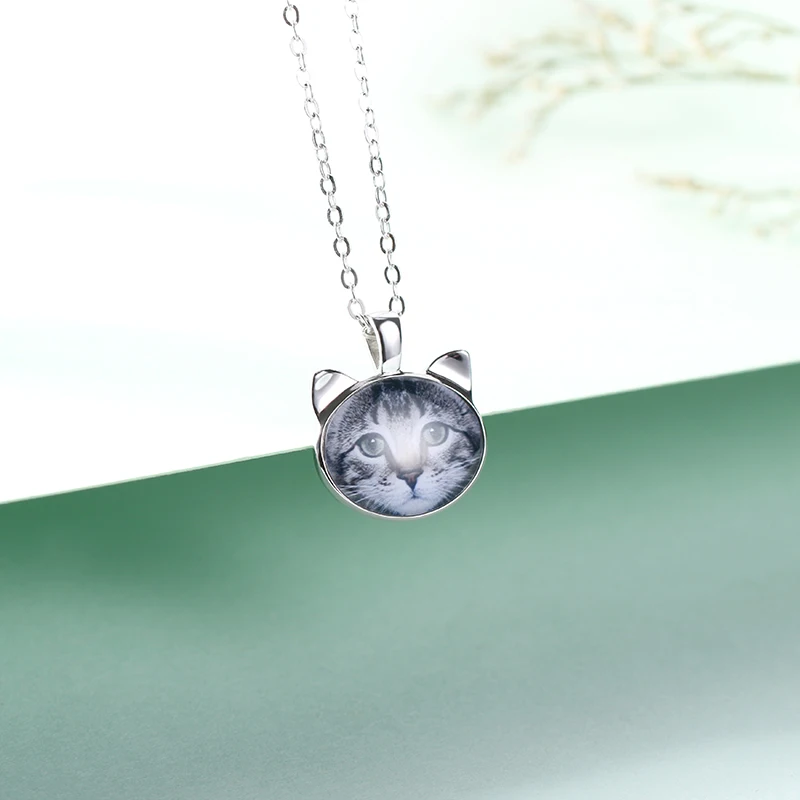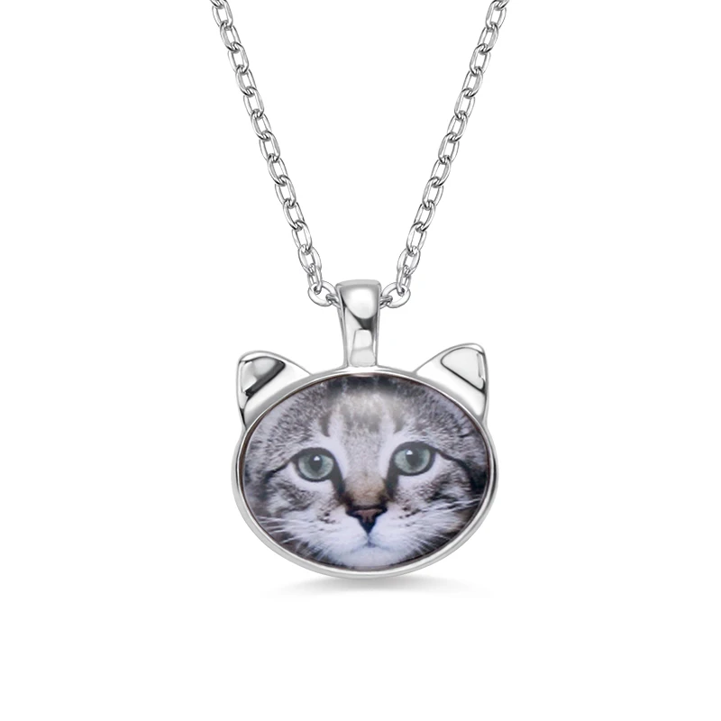 HIGH QUALITY Wholesale Customized Women Animal Memorial Jewelry Cat Head Color Photo Necklace For Her Birthday P