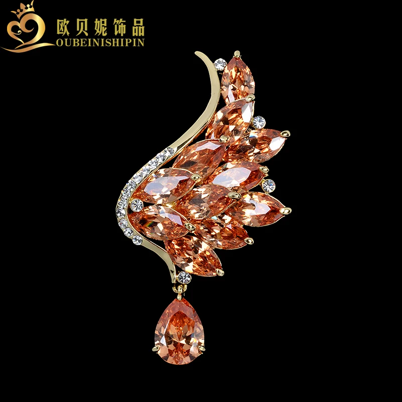OBN 2017 Fashion Large AAA Cubic Zirconia Wing Brooch Badge Wedding Men Jewelry