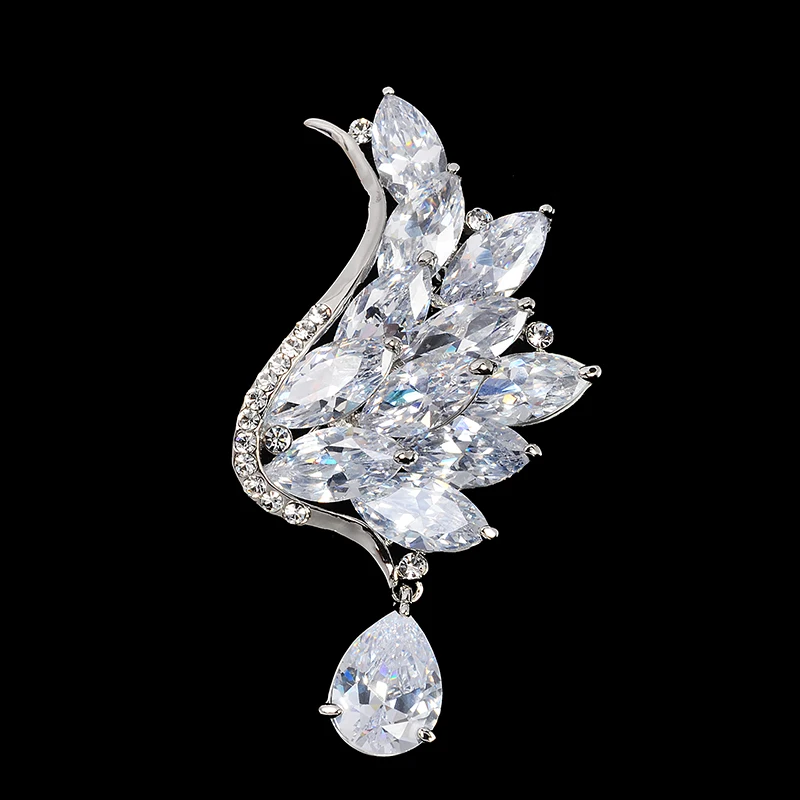 TOP OBN 2017 Fashion Large AAA Cubic Zirconia Wing Brooch Badge Wedding Men Jewelry